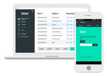 El Blizz Collaboration Companion se instala en el escritorio o en el teléfono móvil para poder acceder rápidamente a sus contactos (de Blizz y TeamViewer), facilitando la comunicación en equipo, los vídeos cara a cara con VoIP de alta definición y las llamadas de audio, reuniones de grupo al instante o programadas con gran capacidad de asistentes (hasta 300 personas), pantalla compartida, y grabaciones de sesión para consultarlas más adelante: todas las herramientas de reunión básicas que necesitará para mejorar la comunicación con los equipos y clientes desde cualquier lugar y en cualquier momento.