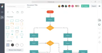Creately es una plataforma diseñada para la elaboración de diagramas de flujo. Consigue la forma de más sencilla de trabajar visualmente y logra trabajar de forma colaborativa con tu equipo. Desde el esbozo de conceptos, el análisis de procesos hasta el brainstorming de planes, utiliza Creately Diagrams para pensar y colaborar visualmente.