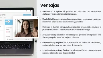 Filmijob es una plataforma de recursos humanos que optimiza y automatiza los procesos de selección de personal mediante videoentrevistas en diferido y herramientas de inteligencia artificial. Ayuda a las empresas a identificar y evaluar talento de forma rápida, eficiente y precisa, eliminando entrevistas iniciales presenciales y permitiendo a los candidatos realizar entrevistas en momentos flexibles. Además, analiza competencias, transcribe respuestas y ofrece insights clave para tomar decisiones informadas. Filmijob mejora la experiencia del candidato, refuerza el employer branding y reduce costos y tiempos, convirtiéndose en una solución integral para la gestión del talento.