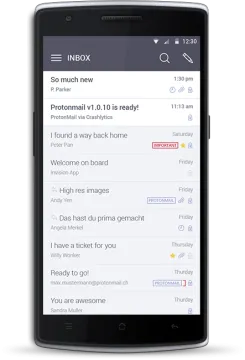 Nuestra bandeja de entrada de próxima generación está diseñada para ayudarle a trabajar más rápido al ser fácil de usar. El cifrado que usamos para garantizar la privacidad del correo electrónico es completamente invisible. Cada detalle en nuestro servicio de correo electrónico seguro está optimizado para ayudarle a una mejor lectura, organización y envío de correo electrónico.