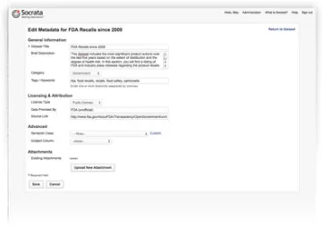 Socrata Open Data Portal: El Portal de datos abiertos de Socrata ofrece a los ciudadanos una forma de acceder y usar información pública en lugar de pasar por un proceso formal para solicitar información que puedan ver, comparar, visualizar y analizar datos en tiempo real.